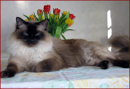 EP Allierags Rambo Tito ~ Tito Ruskea colourpoint kastraatti uros Isä: PR & EC Mirandos Rattle 'N Hum Emo: CH Mt Doll Golden Lady