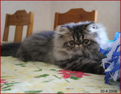 Precious On The Spot ~ Mikko Brown spotted tabby Persian male Isä: EC SW'99 Du Monet Touché of Rerun Emo: GIC Snowdrop's Hanne Boel
