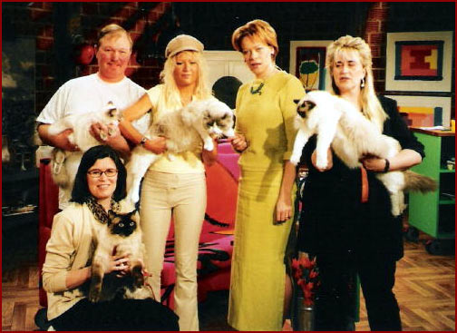 One day Mom was on a business trip in Jyväskylä, in Central Finland. She had kept her mobile shut the whole day during the meeting and during the flight back to Helsinki. At Helsinki airport the mobile started to peep, a lot of messages. There was one very strange message from Riitta (the whole world is upside down and Riitta is almost fainting. Mom did not understand at all what that was, so she called Riitta immediately. The big news was that ragdolls would be live on TV in the morning show. Mom almost fainted herself too when Riitta said she ought to go there too and take me with her. We spent the following week in mixed feelings. Mom was considering if she would take me there or not. Finally she decided that off we go.