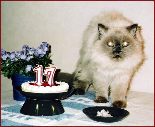 9.1.1986 - 26.2.2003 PR Rezajeh Garfield ~ Karvinen Blue point colourpoint Persian male Sire: Marisha Mouselline Dam: Romaire Tabatha